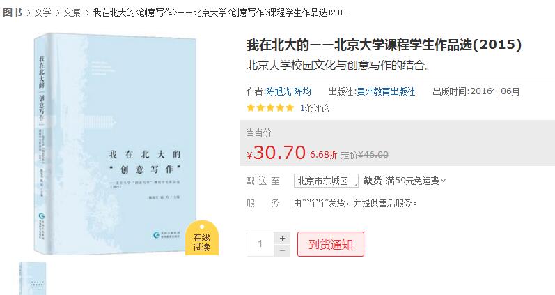 北大藝術學院為本科生新開設了《創意寫作》基礎課程。第一批《我在北大創意寫作》北大學生的筆下成果經整理、匯編后,與中尚圖合作出版