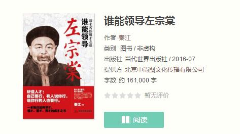 知名網絡作家個人出書,品血肉豐滿、個性十足的左宗棠